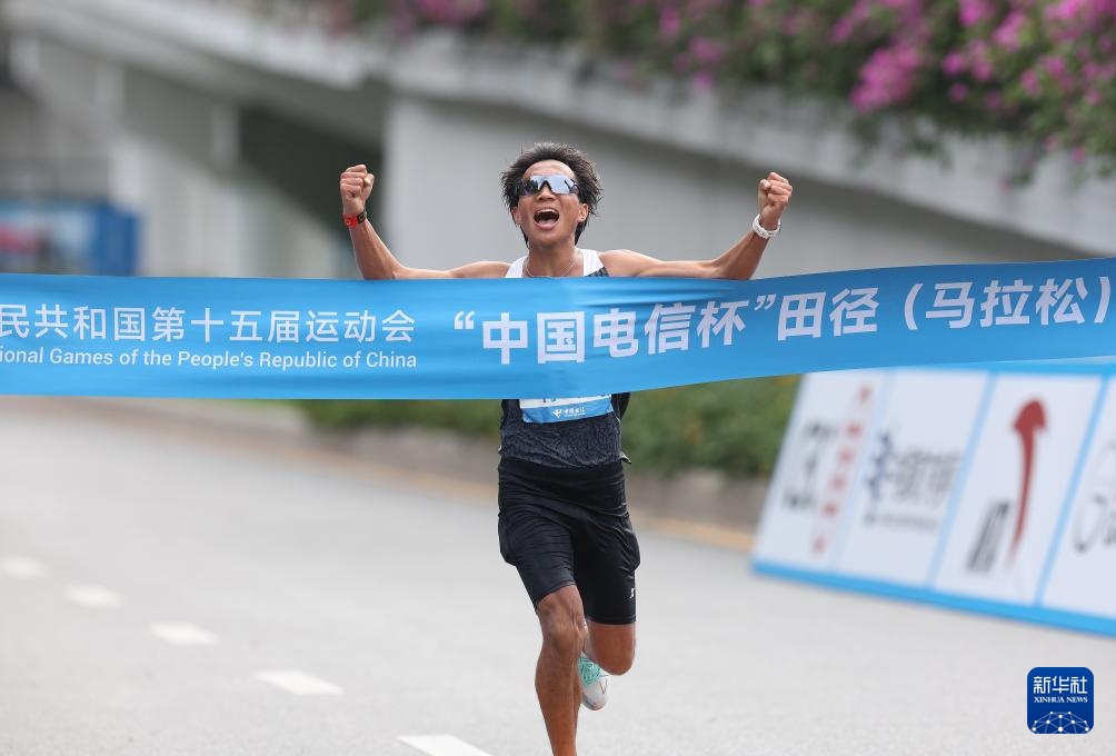 11月15日,宁夏队何洁在比赛中率先冲线,夺得冠军。同日,第十五届全国田径锦标赛男子马拉松比赛举行。此次赛事横跨深圳、香港,成为全运史上首次跨境马拉松。新华社记者丁婷供图 11月15日,宁夏队球员何洁在比赛中冲线庆祝胜利。同日,第十五届全国田径锦标赛男子马拉松比赛举行。此次赛事横跨深圳、香港,成为全运史上首次跨境马拉松。新华社记者丁婷供图。 上一篇:首页 体育丨“教练外卖”助力揭开湖南益阳市羽