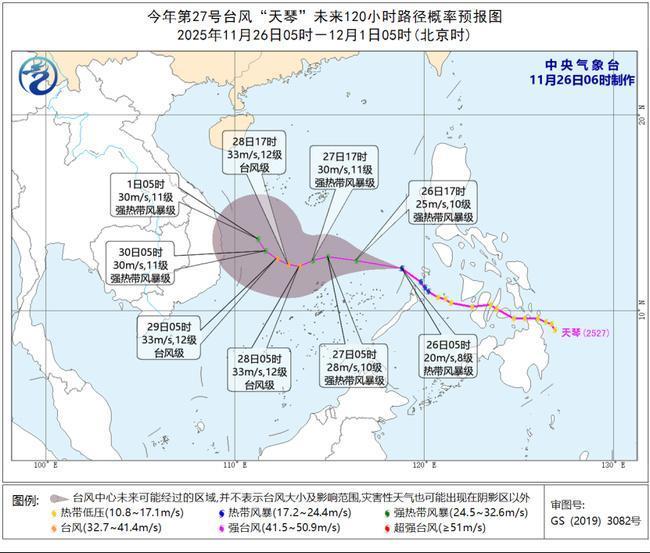台风蓝色警报已发布。今年第27号台风已进入南海